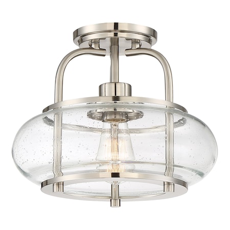 - DETAILS: Constructed of Steel with Brushed Nickel Finish and Clear Seeded Glass Shade