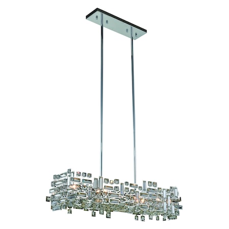 (V2100D35C/RC) Contemporary Style Picasso 6 Light Chrome Pendant With Clear Royal Cut Crystal. Room Use: Dining Room; Living Room; Bedroom; Bathroom; Entry Way; Closet. Diameter Of 23 Inches; Minimum Hanging Height Of 26 Inches, Maximum Hanging Height Of 80 Inches. Warm, Brilliant Light Is Created By 6 Light Bulbs. Light Bulb Data: 6 E12 40 Watt. Bulb Included: No.