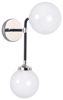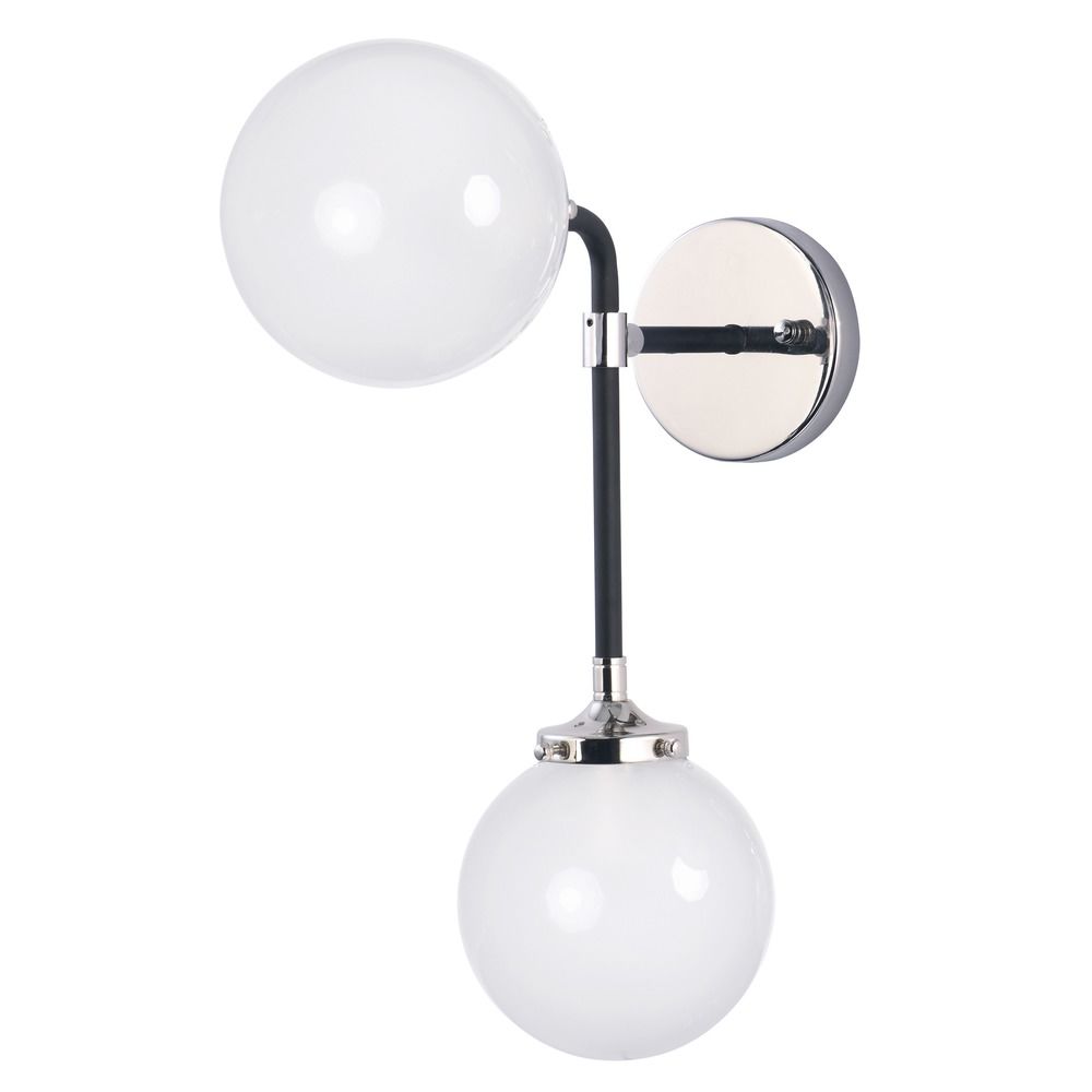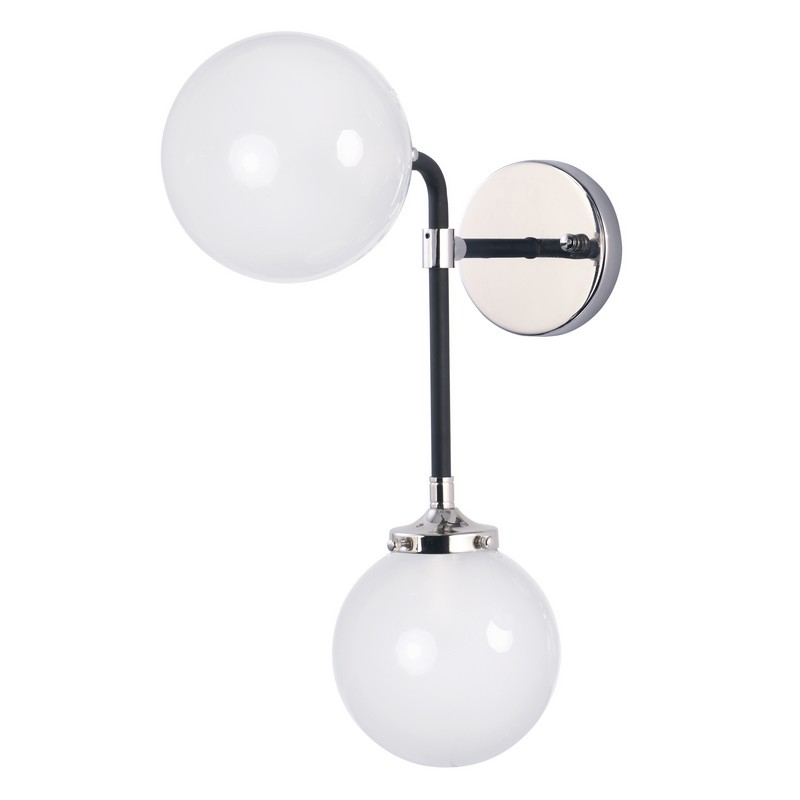 Maxim 24722WTBKPN Atom Modern Industrial White Opal Glass Ball Wall Sconce, 2-Light 80 Total Watts, 18" H x 6" W, Black and Polished Nickel