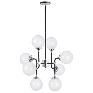 Maxim 24725WTBKPN Atom 8-Light Pendant, Black and Polished Nickel Finish, White Glass, CA Incandescent E12 Incandescent Bulb , 9W Max., Wet Safety Rating, 3000K Color Temp, Standard Triac/LutronĀ® or Leviton Dimmable, Bubble Glass Shade Material, 600 Rated Lumens