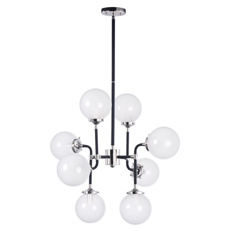 Maxim 24725WTBKPN Atom Modern Industrial Pendant White Opal Glass Ball Pendant Ceiling Light, 8-Light 320 Total Watts, 23"H x 28"W, Black and Polished Nickel