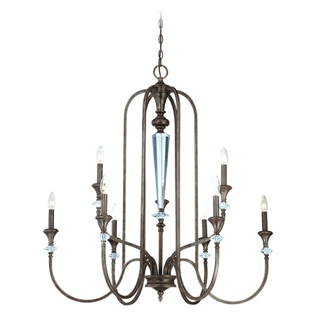 Craftmade 26729-MBS Boulevard Crystal Candle Chandelier, 9-Light 540 Watts (37" W x 39" H), Mocha Bronze/Silver
