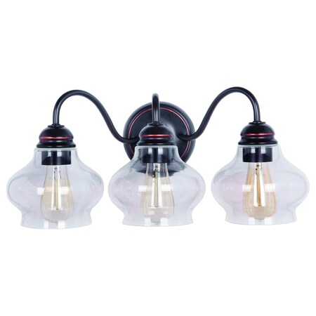 Craftmade 35003-OBG Yorktown Victorian Glass Bathroom Vanity Wall Lighting, 3-Light, 180 Watts, Oiled Bronze Gilded (20" W x 9" H)