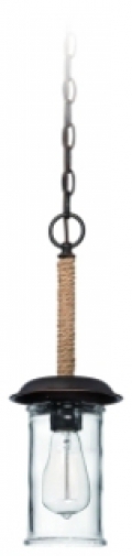- Constructed of Steel with Aged Bronze Finish and Clear Glass Shade with Natural Rope Accent