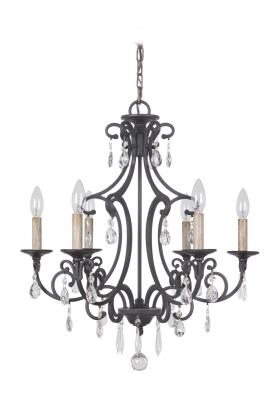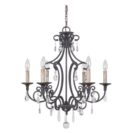 Craftmade 38926-MBK Bentley Scrollwork Chandelier Lighting, 6-Light, 360 Watts, Matte Black (22" W x 25" H)