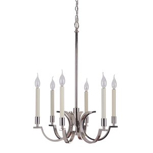 Craftmade 40426-PLN Crescent Candle Chandelier Lighting, 6-Light, 360 Watts, Polished Nickel (21"W x 25"H)