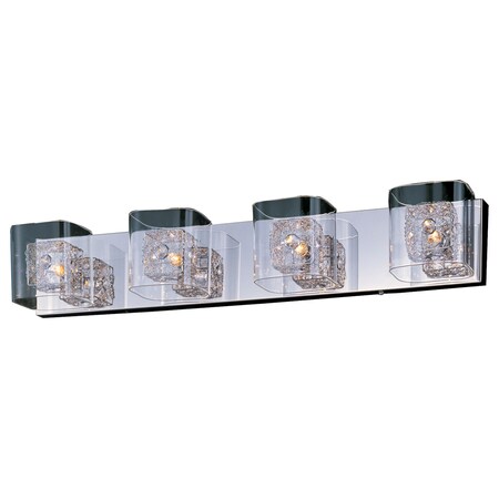 ET2 E22834-18SVPC Gem Modern Clear Crystal/Metal Cubes Bath Vanity Wall Mount with Silver Shade, 4-Light Xenon 160 Total Watts, 5"H x 31"W, Polished Chrome