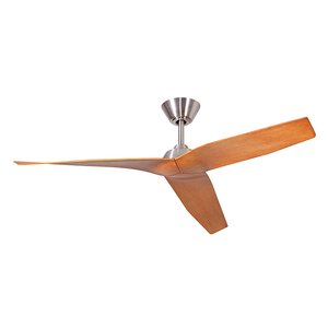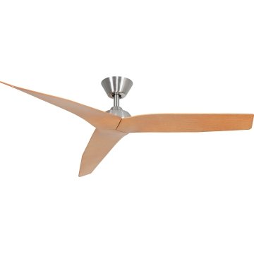 - MATERIAL: This contemporary ceiling fan was designed with exceptional material including a silicon steel body made to last with a brushed polished nickel finish and styled with three custom made wooden teak tri-blades.