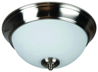 - DETAILS: Constructed of Steel with Brushed Polished Nickel Finish and Frosted White Glass Shade