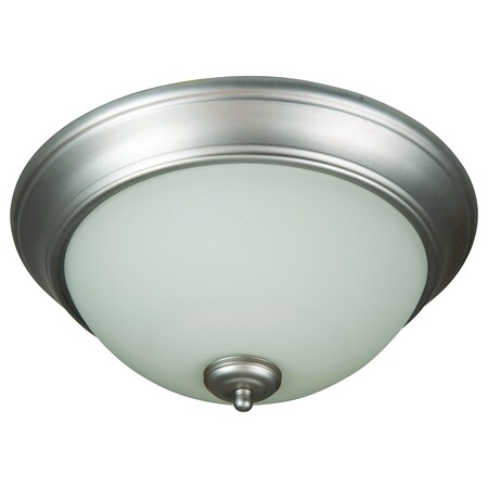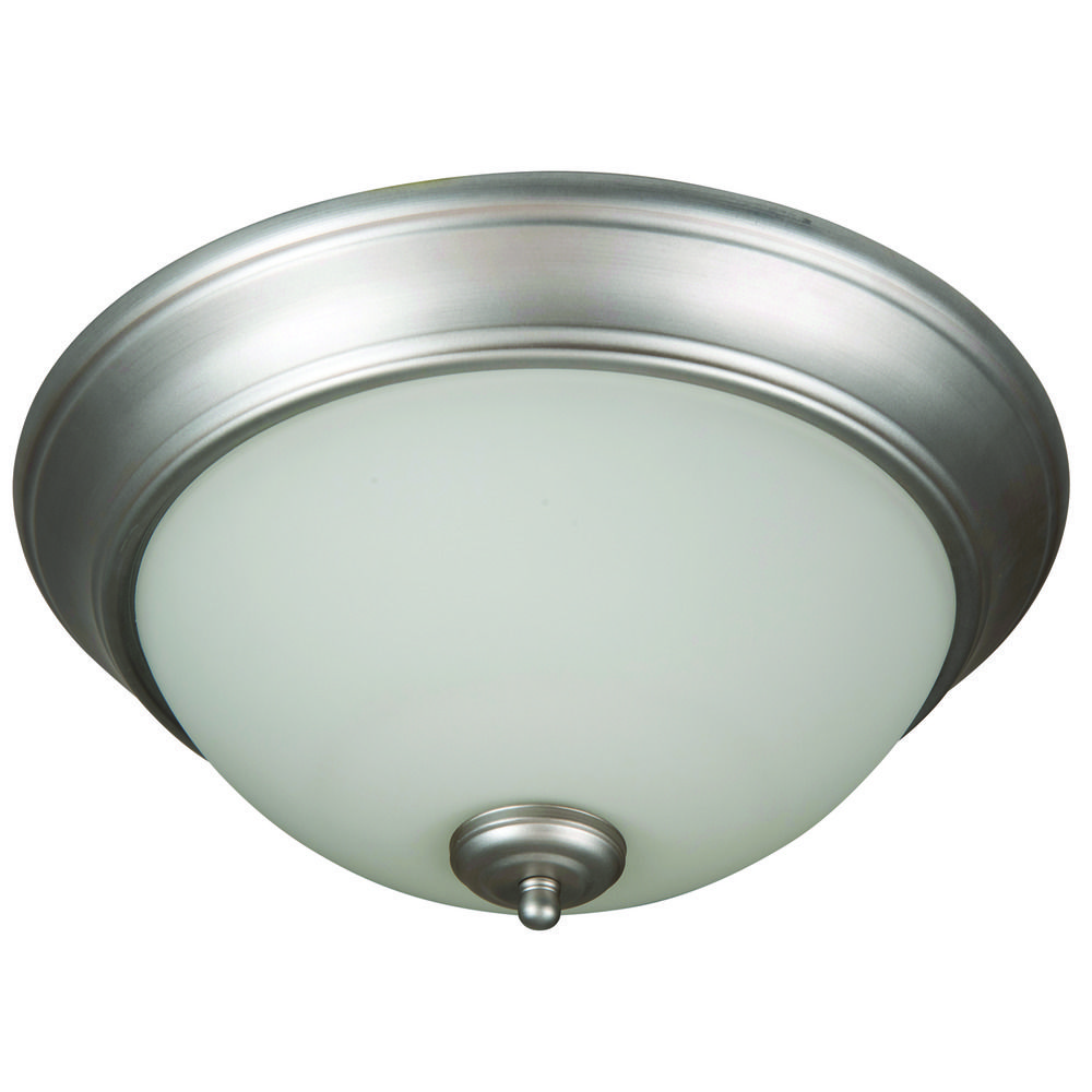 - DETAILS: Constructed of Steel with Brushed Satin Nickel Finish and Frosted White Glass Shade