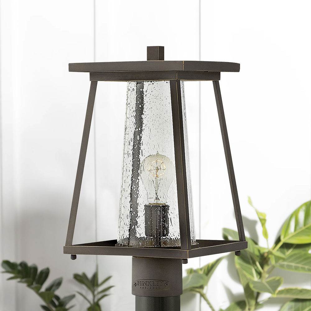 Hinkley Burke Collection Transitional One Light Outdoor Post Top/Pier Mount, Oil Rubbed Bronze w/Clear Glass