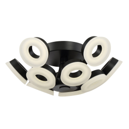 Eurofase 29096-022 Glendale Frosted Rings with Spun Aluminum Frame LED Semi Flush Ceiling Light, 10-Light 24 Total Watts, 6" H x 18" Dia, Black