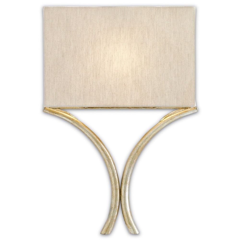 Currey and Company 5900-0006 Cornwall - One Light Wall Sconce, Silver Leaf Finish with Natural Linen Shade
