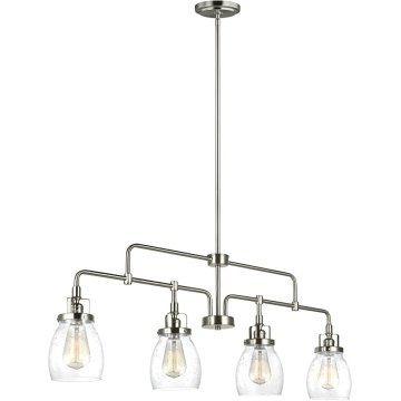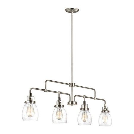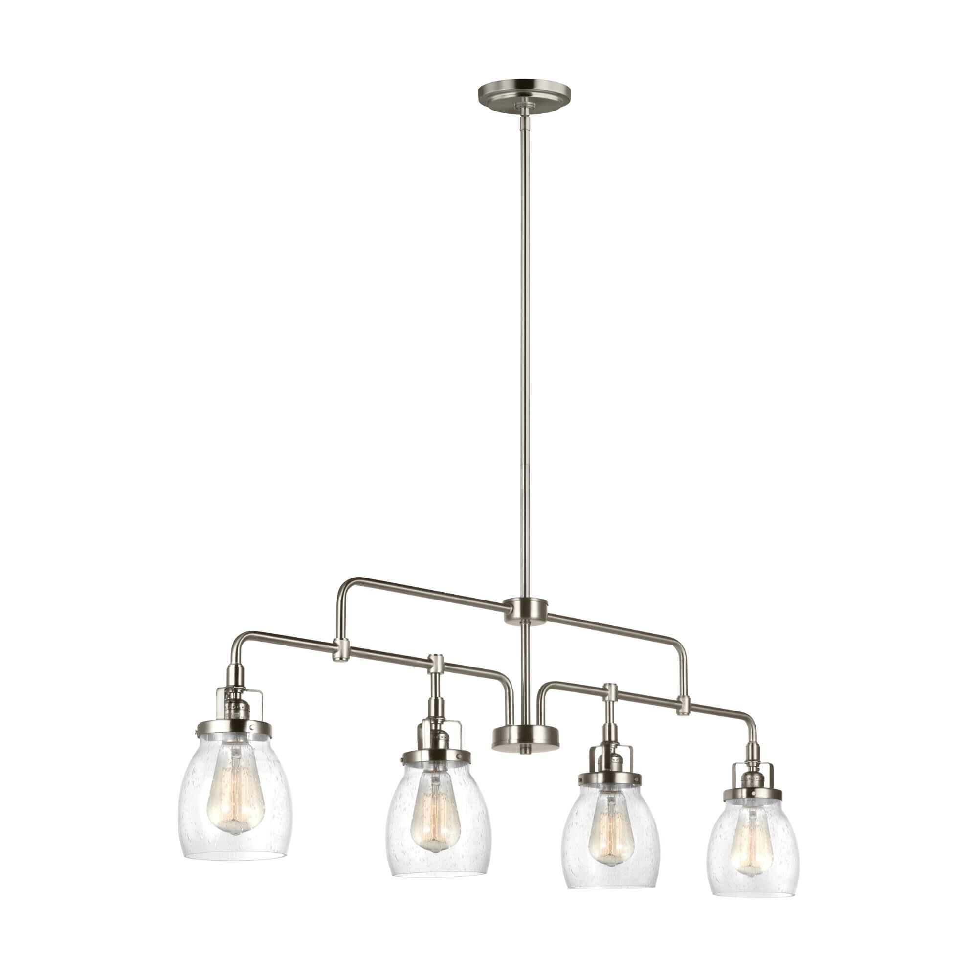 - SOPHISTICATION AND DESIGN: Featured in the decorative Belton collection, this dining room lighting fixtures hanging, with its chandelier-like quality, is the perfect option for brightening up any space in your home. Sea Gull Lighting's Four Light Island Pendant features clear seeded glass shades and adds a touch a style and interest to any room.