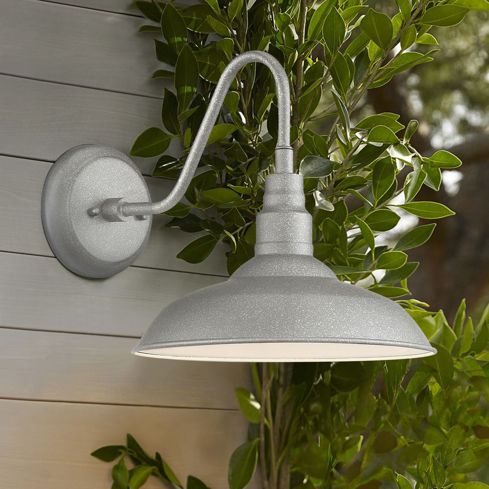 - DETAILS: Constructed of Steel with Galvanized Finish and Round Metal Shade