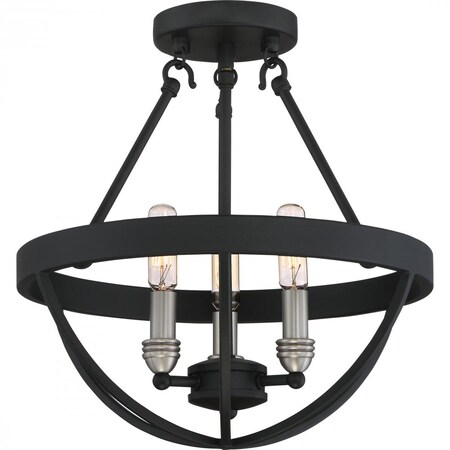 Quoizel BSN1714EK Basin Semi-Flush Ceiling Lighting, 3-Light, 180 Watts, Earth Black (15" H x 14" W)
