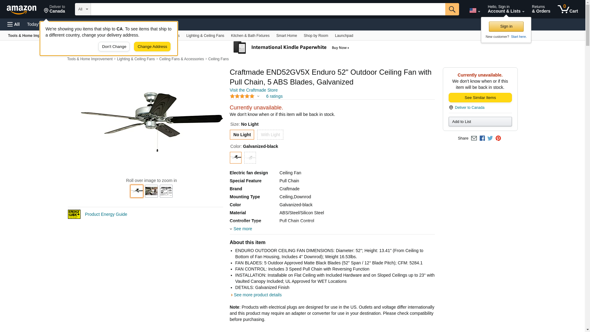 | gordonelectricsupply.com | END52GV5X | 1 | Craftmade Orders usually Ship Next Day | 1 | 1 @ $188.60 |