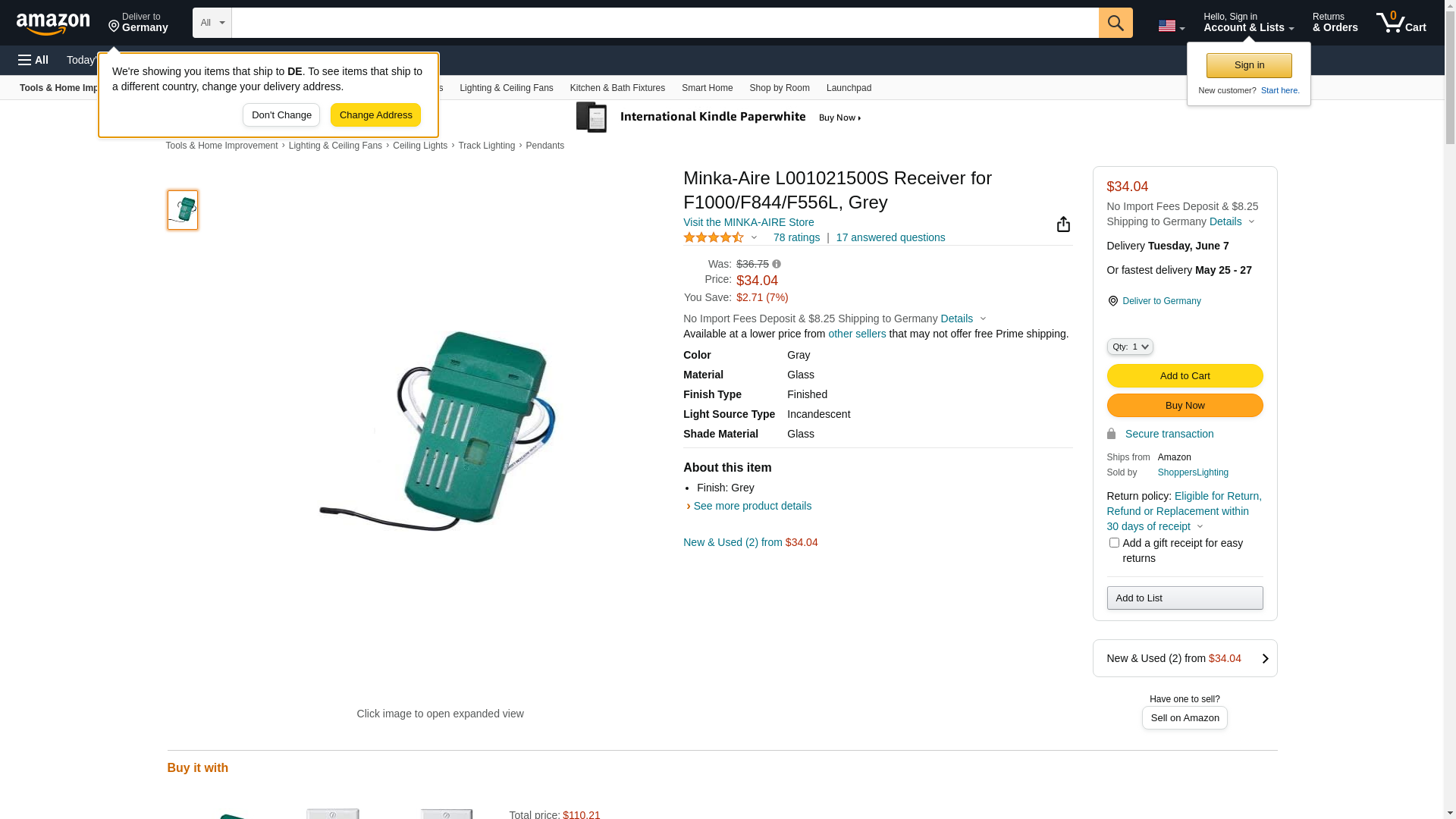Minka-Aire L001021500S Receiver for F1000/F844/F556L, Grey