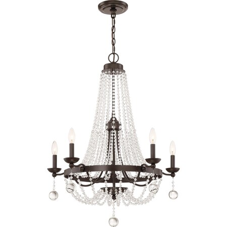 Quoizel LVY5005WT Livery Glass Drop & Beads Chandelier, 5-Light, 300 Watts, Western Bronze (34" H x 28" W)