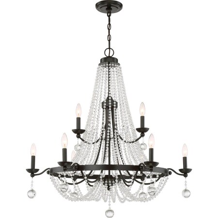 Quoizel LVY5009WT Livery Glass Drop & Beads Chandelier, 9-Light, 540 Watts, Western Bronze (37" H x 36" W)