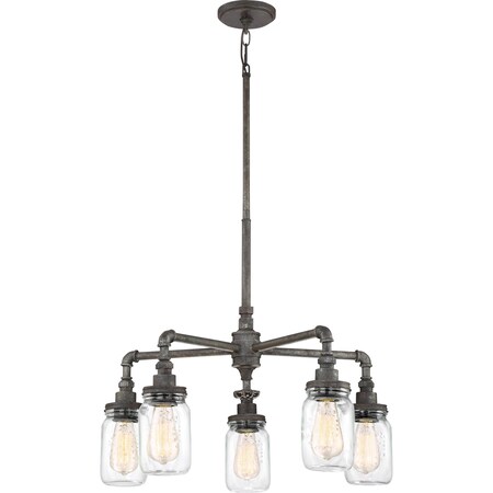 Quoizel SQR5005RK Squire Industrial Rustic Chandelier, 5-Light 500 Total Watts, 23" H x 26" W, Rustic Black