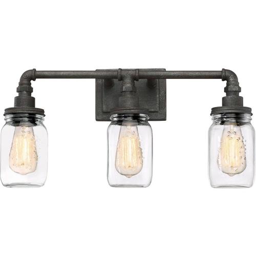 Quoizel SQR8603RK Squire Industrial Rustic Vanity Wall Lighting, 3-Light, 300 Watts, Rustic Black (11"H x 22"W)