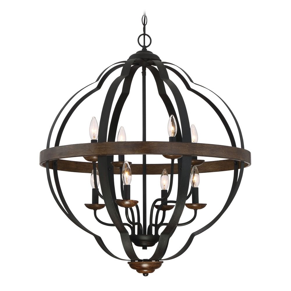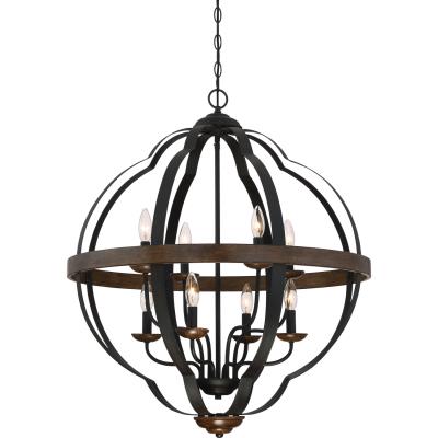 Quoizel SRN5208MK Siren Metal and Woods Foyer Pendant Chandelier, 8-Light, 480 Watts, Marcado Black (33"H x 28"W)