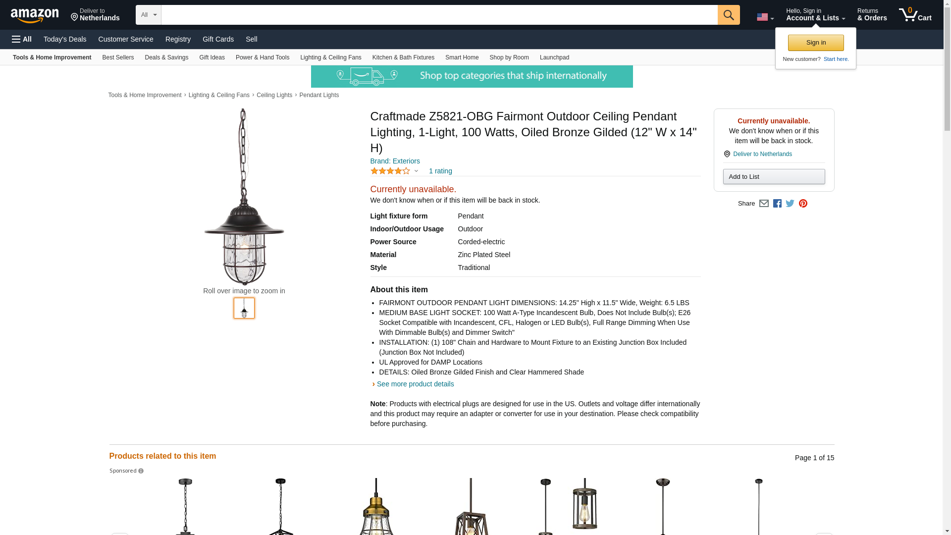 | brecherslighting.com | Z5821-OBG | 1 | 75 | 1 | 1 @ $153.00 |