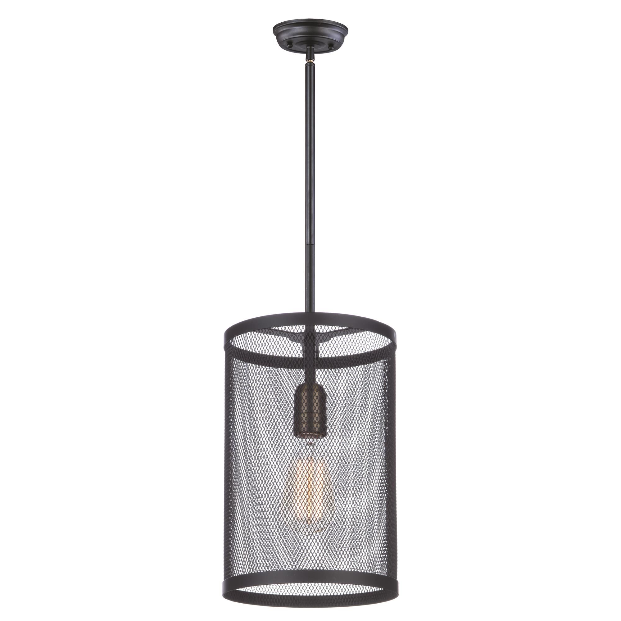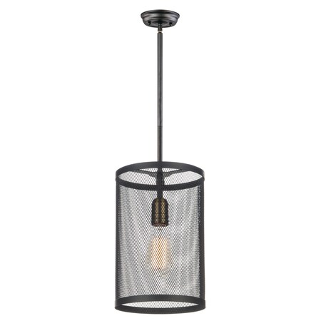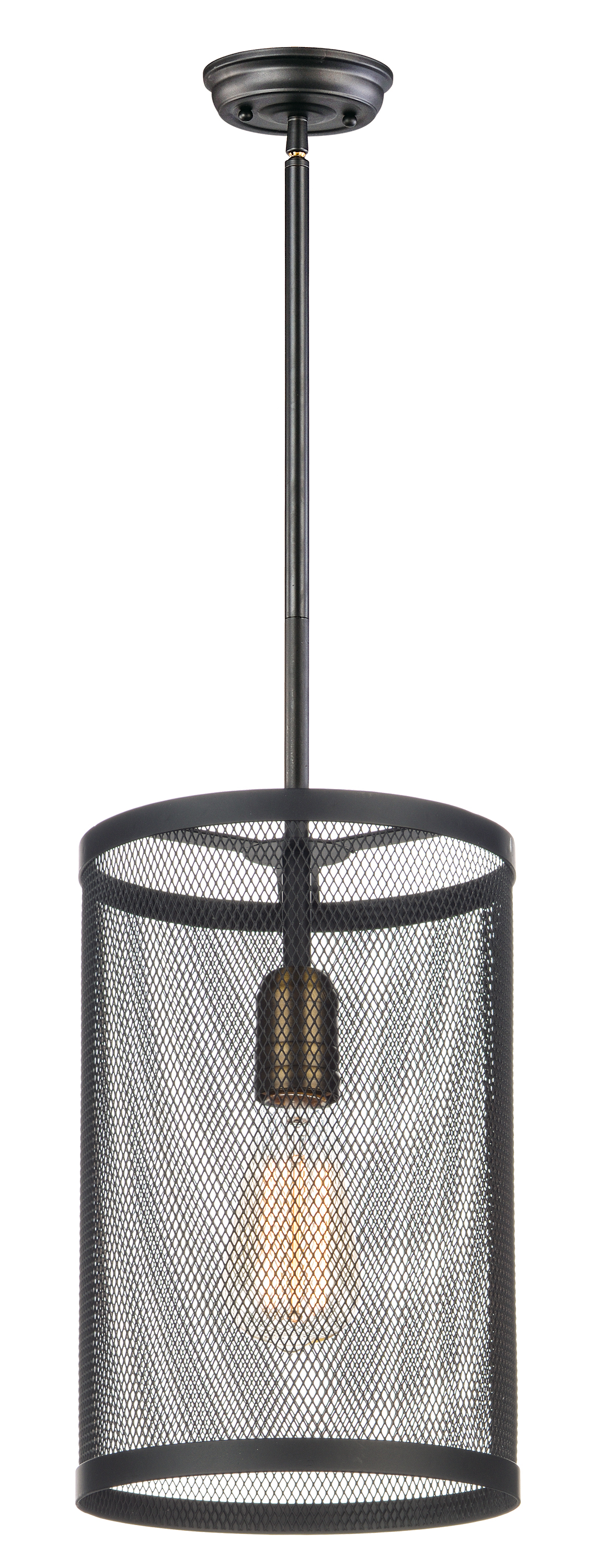 Maxim 20111BKNAB Palladium Industrial Metal Mesh Cylinder Pendant Ceiling Light, 1-Light 60 Watt, 12" H x 8" W, Black/Natural Aged Brass
