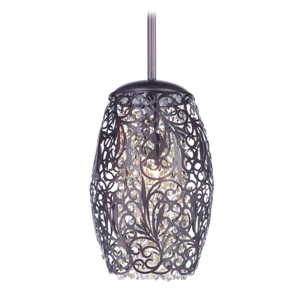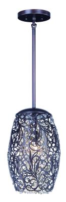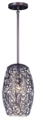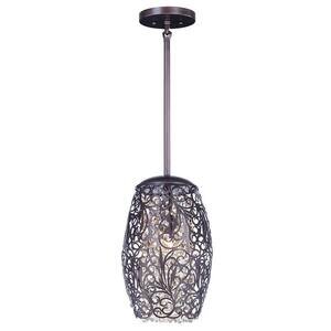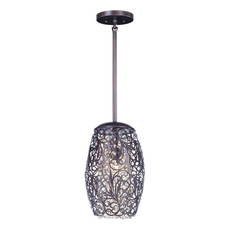 Maxim 24153CGOI Arabesque Patterned Metal Beveled Crystal Glass Cylinder Mini Pendant Ceiling Lighting, 1-Light Xenon 40 Watt, 11" H x 7" W, Oil Rubbed Bronze