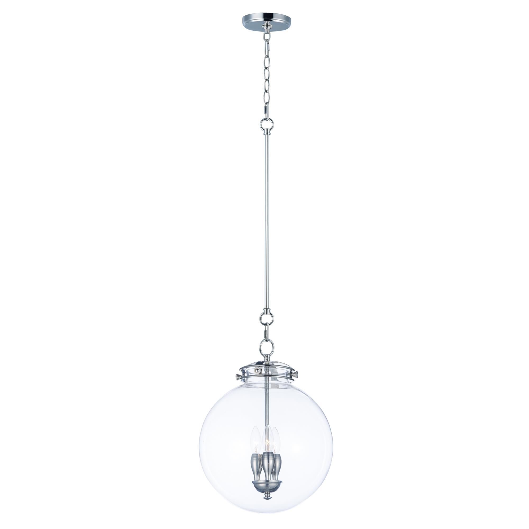 Maxim 25183CLPN Retro Clear Glass Orb Pendant Ceiling Light, 3-Light 180 Watts, 18"H x 14"W, Polished Nickel