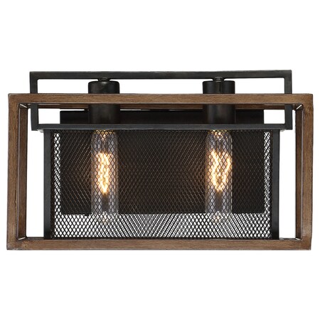 Rio Lobo 2-Light Bath Fixture - Dark Oak Finish with Black