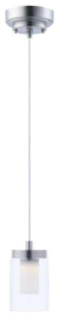 Maxim 30260CLFTSN Mod Clear and Frosted Glass Cylinder Mini LED Pendant Ceiling Light, 1-Light 8 Watt, 7" H x 4" W, Satin Nickel