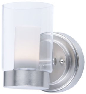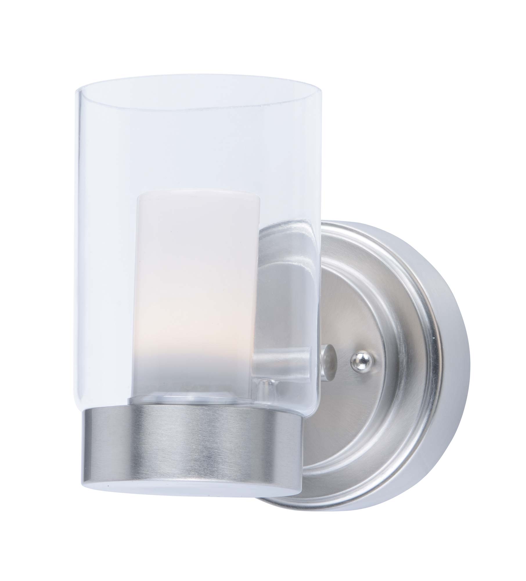 Maxim 30261CLFTSN Mod Clear And Frosted Glass Cylinder LED Wall Sconce, 1-Light 8 Watt, 7"H x 5"W, Satin Nickel