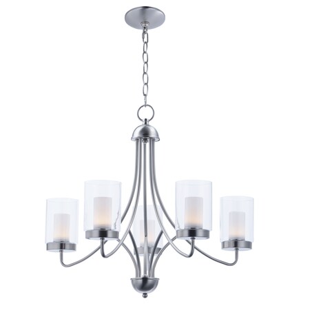 Maxim 30265CLFTSN Mod Clear and Frosted Glass Cylinder LED Chandelier, 5-Light 33 Total Watts, 23" H x 26" W, Satin Nickel