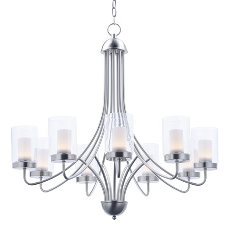 Maxim 30267CLFTSN Mod Clear And Frosted Glass Cylinder LED Chandelier, 9-Light 45 Total Watts, 30"H x 31"W, Satin Nickel