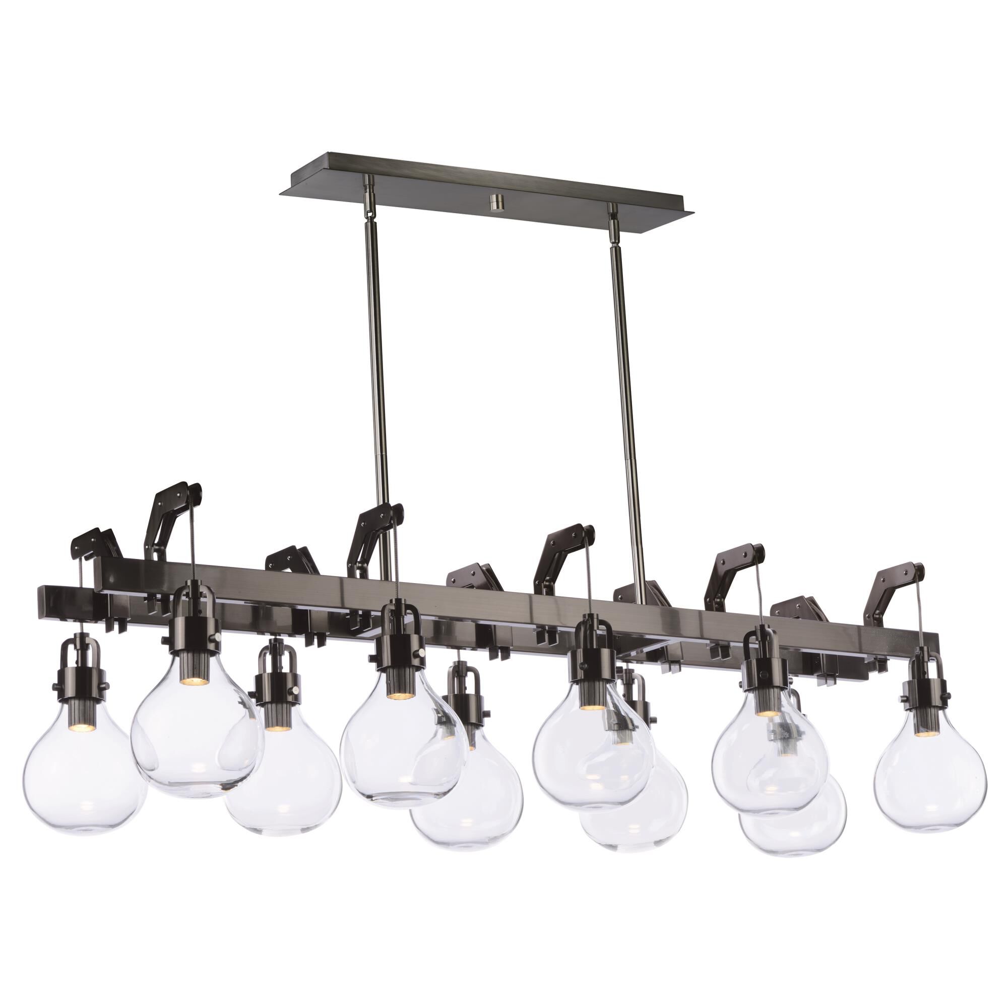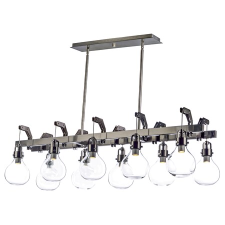 Maxim 39698CLDSN Kinetic Industrial Clear Glass Globe LED Linear Pendant Ceiling Light, 10-Light 6 Watts, 14"H x 18"W 50"L, Dark Satin Nickel