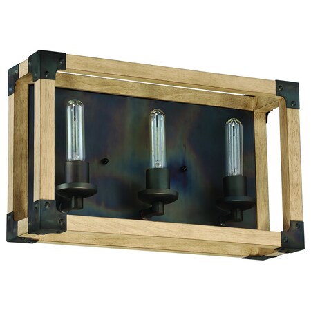Cubic Collection - 3 Light Vanity in Fired Steel with Natural Wood by Craftmade - 41503-FSNW | MyKnobs