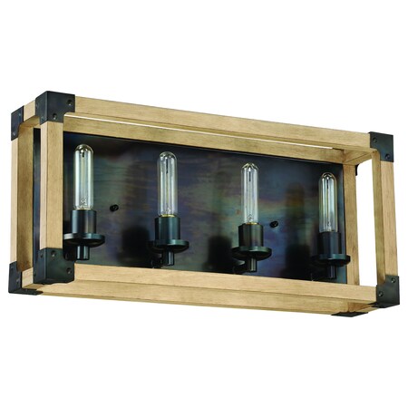 Craftmade 41504-FSNW Cubic Industrial Vanity Wall Lighting, 4-Light, 240 Watts, Fired Steel (24"W x 11"H)