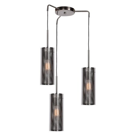 Multis 3-Light Encaged Cluster Pendant - Black Chrome - Metal Mesh - Clear Glass Diffuser