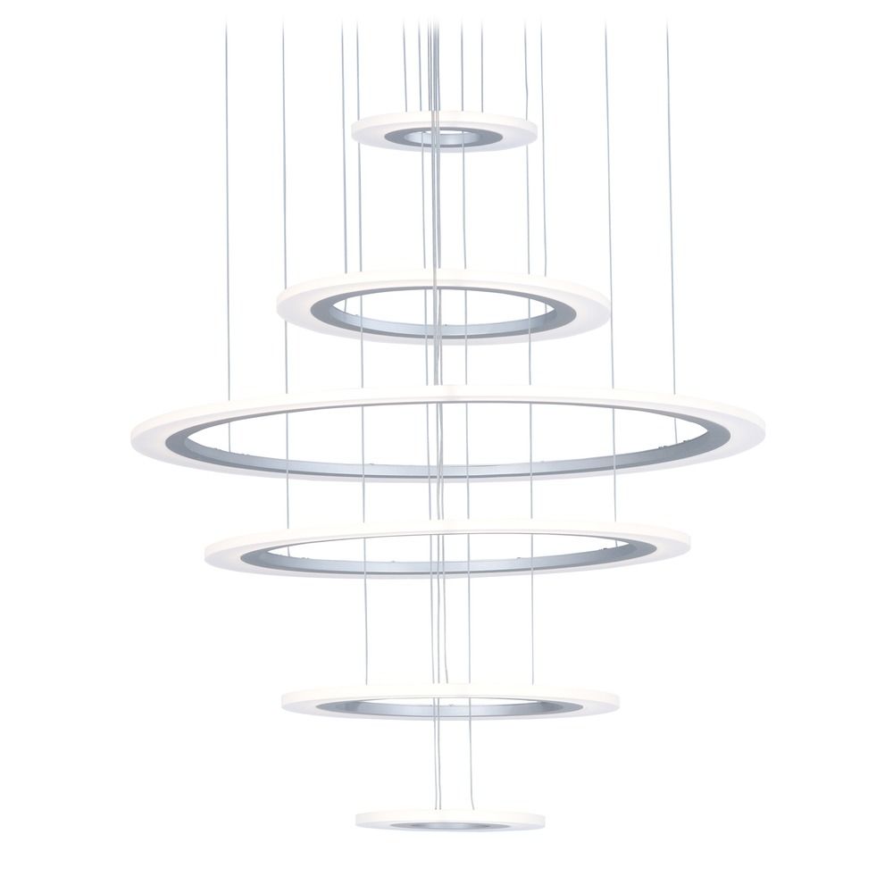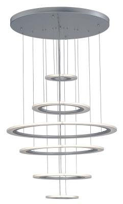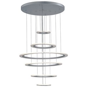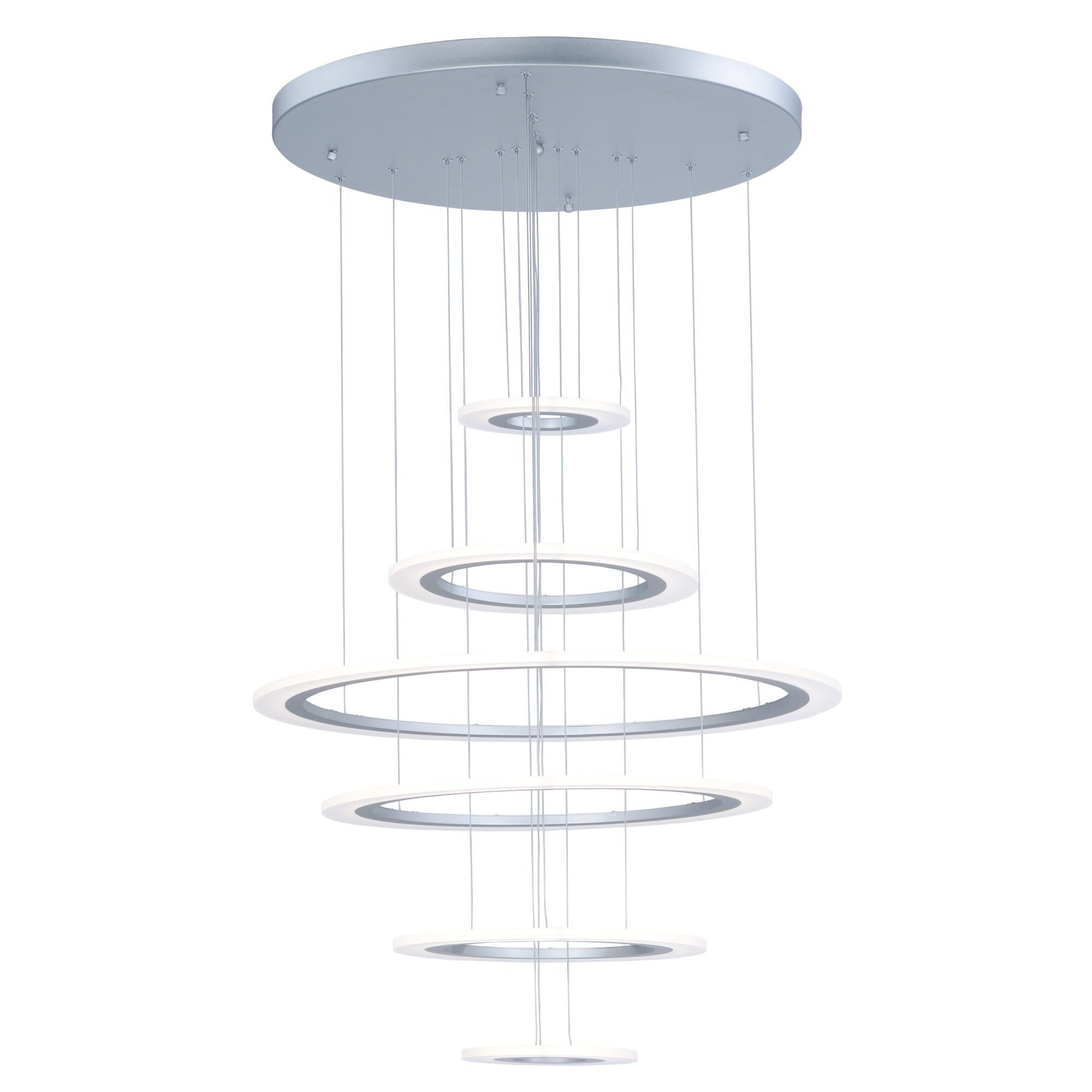 ET2 E22664-11MS Saturn II LED Suspended Horizontal Acrylic & Aluminum Ring Large Pendant Ceiling Lighting, 6-Light 105 Watts, 28" H x 30" W, Matte Silver