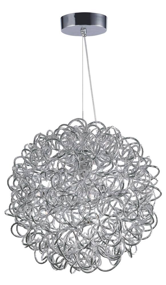 ET2 E32572-PC Dazed Aluminum Rods Mod-silhouette LED Orb Pendant Ceiling Lighting, 8-Light 9.6 Total Watts, 16"H x 16"W, Polished Chrome