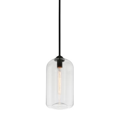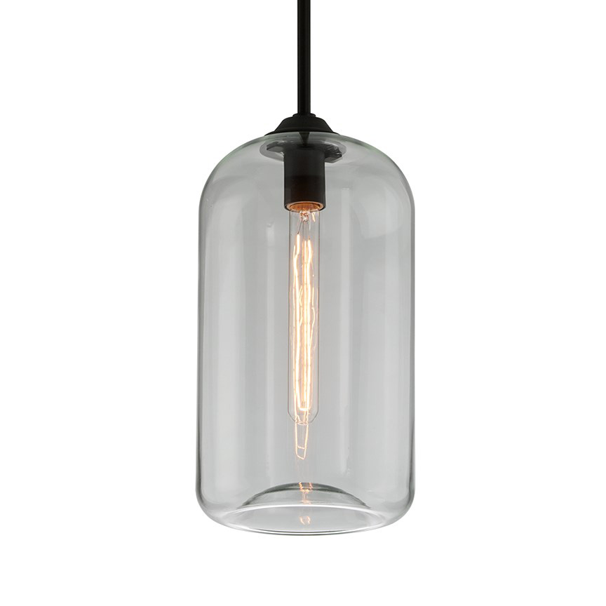 Troy Lighting F5561-SBK District-1 Light Small Pendant-8 Inches Wide by 15.75 Inches High, Finish Color: Satin Black, Glass Color: Clear