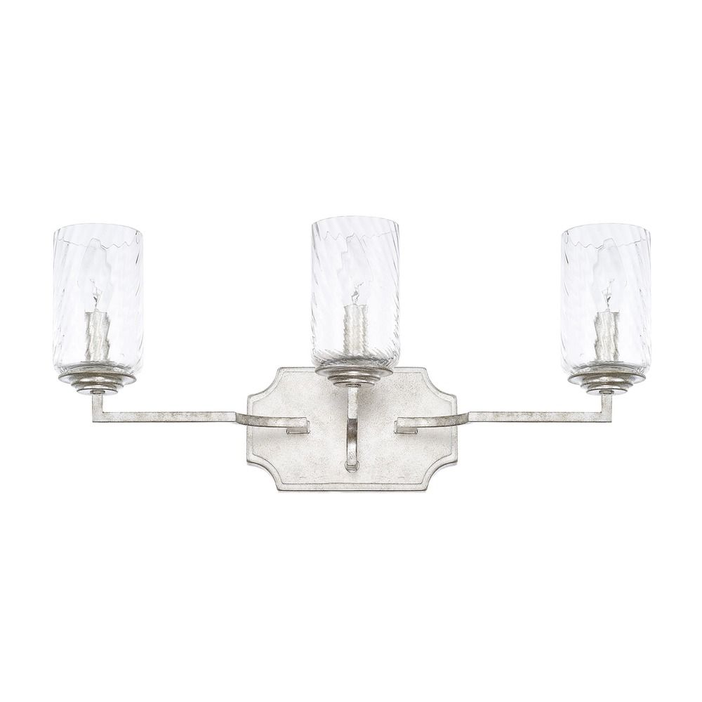 Capital Lighting 119631SP-419 Oxford Clear Swirl Glass Bath Vanity Wall Mount, 3-Light 180 Total Watts, 9" H x 22" W, Silver Patina