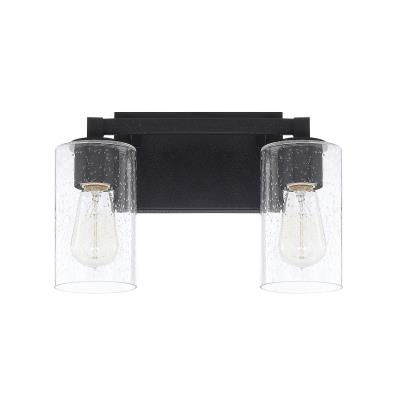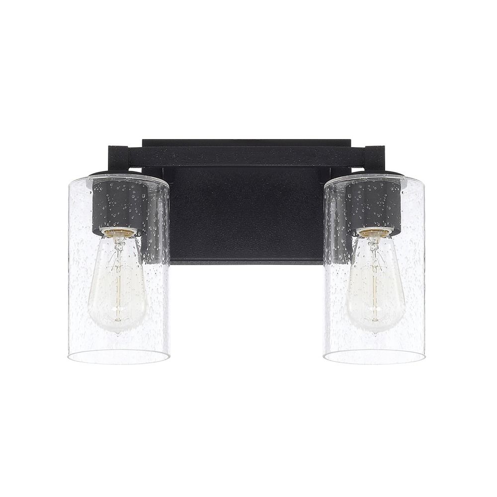 Capital Lighting 119821BI-435 Ravenwood Clear Seeded Glass Bath Vanity Wall Mount, 2-Light 200 Total Watts, 10" H x 13" W, Black Iron