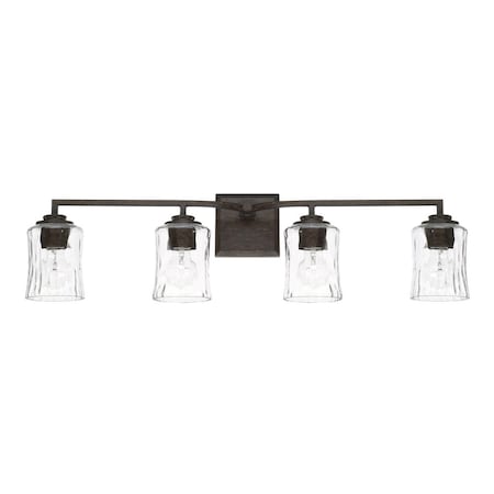 Capital Lighting 120941RB-425 Porter Clear Watered Glass Bath Vanity Wall Mount, 4-Light 400 Total Watts, 9"H x 34"W, Renaissance Brown