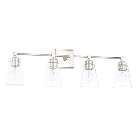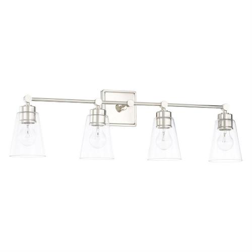 Capital Lighting 121841PN-432 Rory Clear Glass Bath Vanity Wall Mount, 4-Light 400 Total Watts, 10" H x 33" W, Polished Nickel