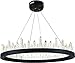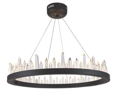 The Malta collection is an amazing blend of Old World functionality and 21st-century technology. Its classic shape a big ring hanging from the ceiling is the same basic principle that brightened castles by candlelight for thousands of years; but now the ring is satin-dark-grey metal, and the illumination comes from special crystals that connect to an LED strip around the perimeter of the fixture. The strip has embedded chips on it and the crystals are magnetized, so you simply set them into place on the metal and the crystals light up instantly.