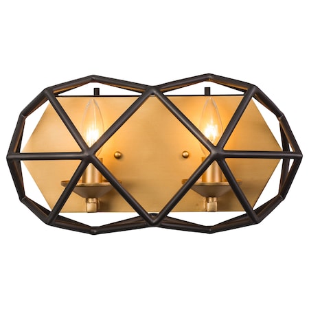 Varaluz 295B02AGRB Geo 2-Light Bath Fixture - Antique Gold with Rustic Bronze