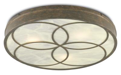 Currey and Company 9999-0025 Bramshill - Three Light Flush Mount, Rustic Gold Finish with Alabaster Glass
